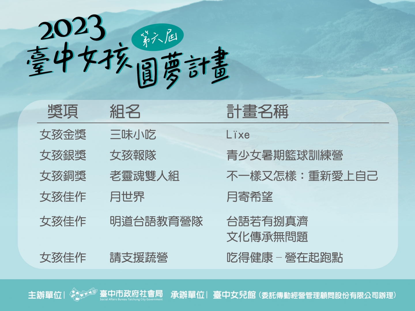 2023第六屆臺中女孩圓夢計畫決賽得獎名單