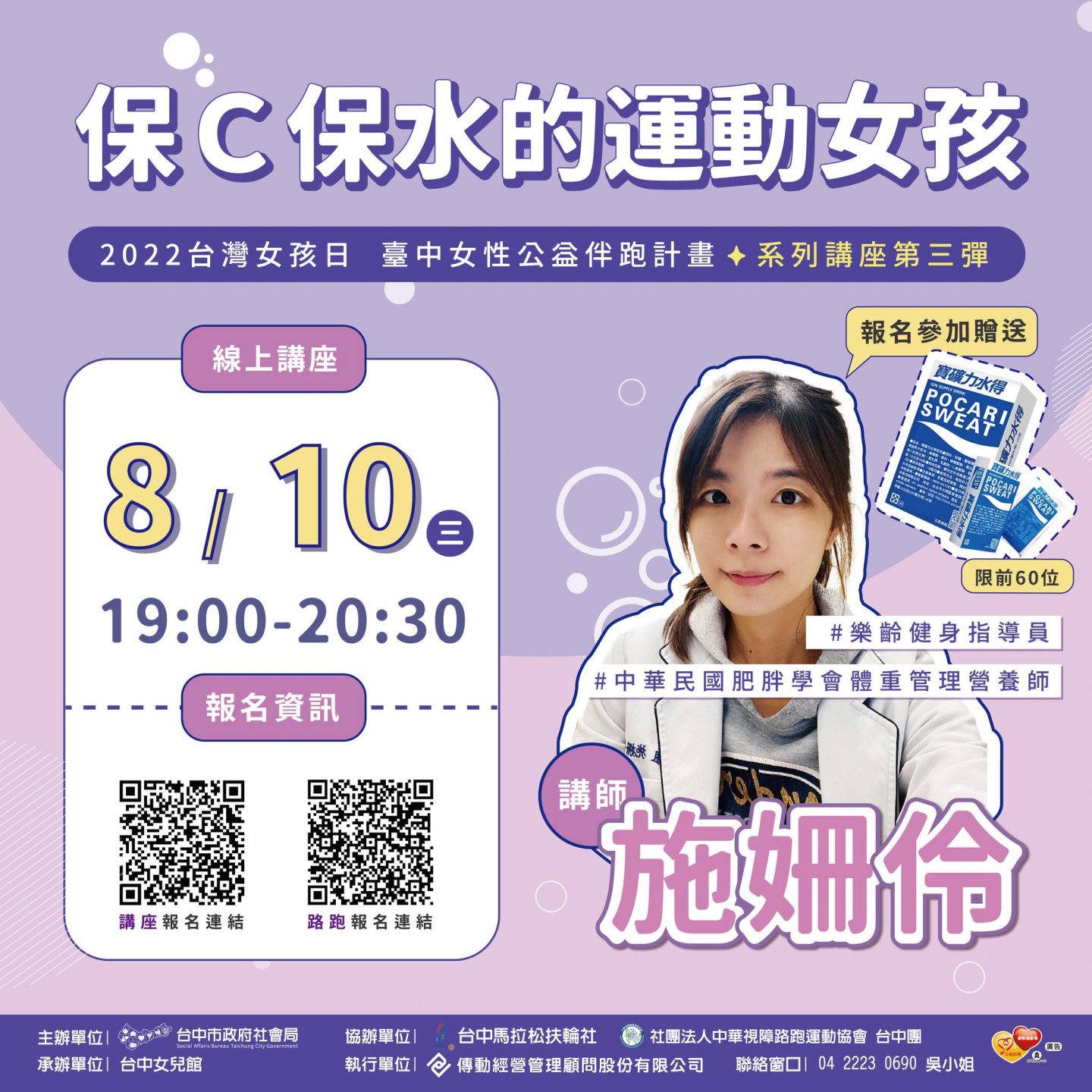本講座將邀請寶礦力水得團隊,來分享女性運動過程中需注意的身體健康狀況,